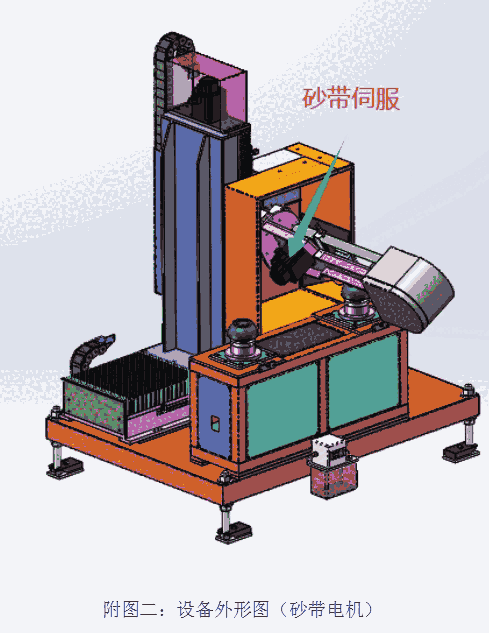 1、有砂带松紧调节装置。砂带旋转的同时,砂带部件随着工件外形,进行角度的旋转,使砂带始终与工件外圆面紧密接触;砂带角度的旋转,用伺服电机控制。