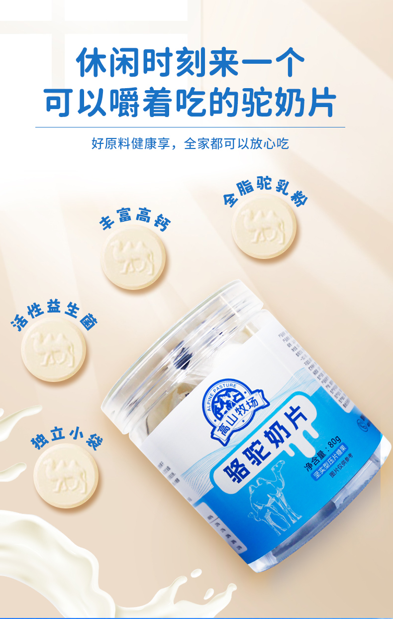 | 骆驼奶奶片 80片/盒 高钙 儿童老人可用 支持代理批发零售厂家直供OEM 保质期 | 360天 | ||