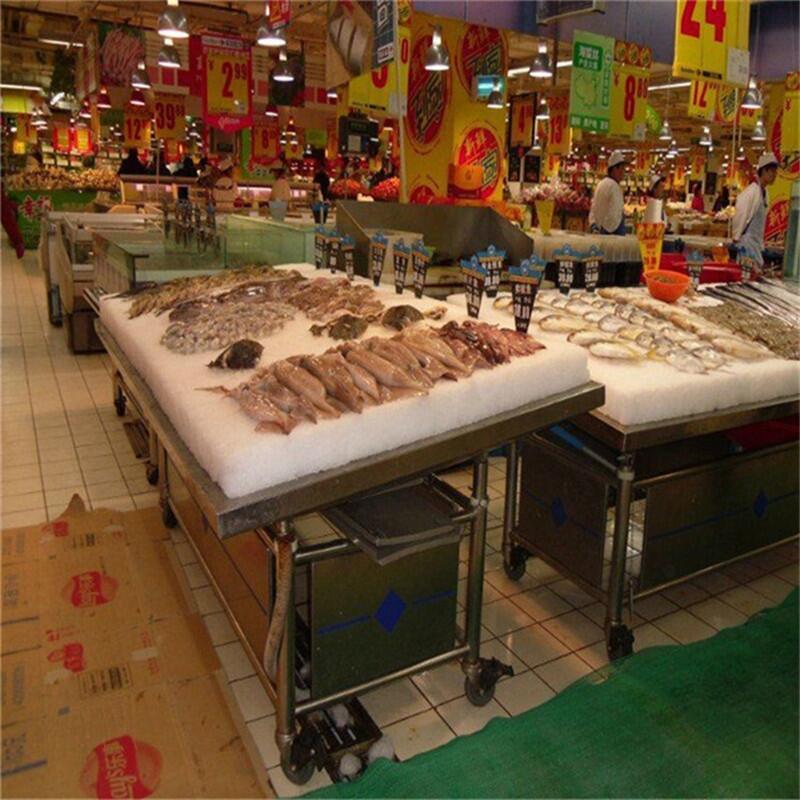 片冰质地干燥、柔软无锐角,在冷藏包装过程中可以对被包装食品起到保护作用,螺旋运输过程中不易发生粘连,其扁平的外型将最小可能的伤害到被冷藏物,更加有利于冷藏物的冷冻保鲜。