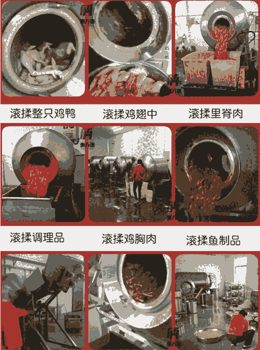使用效率更高是食品厂家用来生产肉食制品与低温火腿生产的主要加工设备,他的用途是将嫩化后的原料肉通过滚揉、按压和腌制,与辅料、添加剂等在真空状态下拌合均匀(备注:肉料在真空状态下呈现膨胀的状态)。