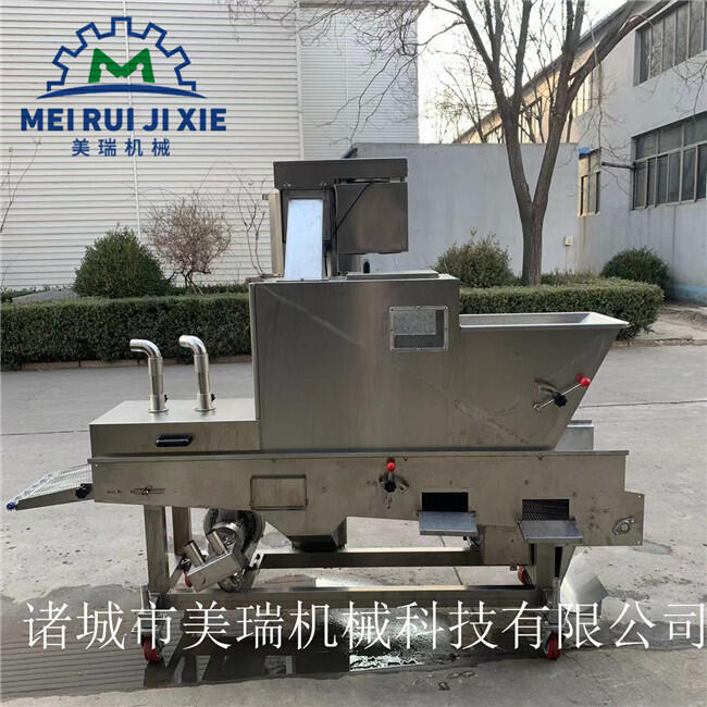 天妇罗挂浆机 鱼豆腐淋浆机 全自动鸡肉上浆流水线我公司生产的裹雪花片机内部设计复杂,使得产品形态饱满,深受客户满意!还装有一套自我调节配重的压辊,即使进行速冻之后还是牢牢的裹涂在产品表面,即可以使得产品表面裹的雪花片不会发生掉落的现象,裹雪花片以及面包糠,还会上一些面包屑,从而实现粉、浆、粉、浆、粉及浆、粉、浆、粉工艺。这样可以一机多用,减少客户的投资成本。可以同上浆机、上面包屑机连接,组成不同产品的生产线,而且不会容易发生变形,这个压辊的作用就仿造手工纂的工艺,