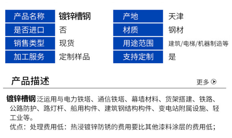 | 产品表面描述 | 新品,镀锌层 | ||
