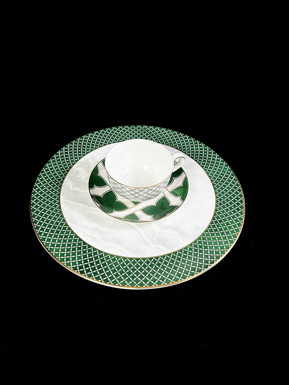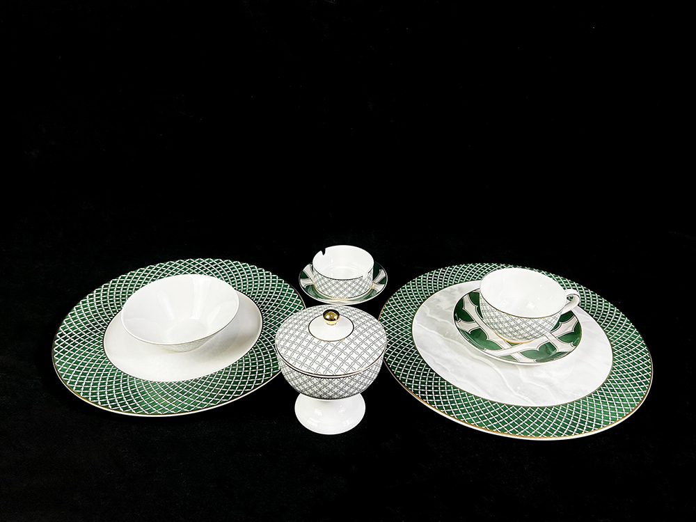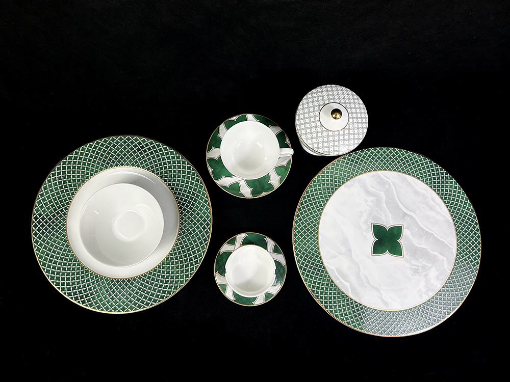 优雅系方格四叶草陶瓷餐具套装定制轻奢酒店摆台用8头景德镇批发