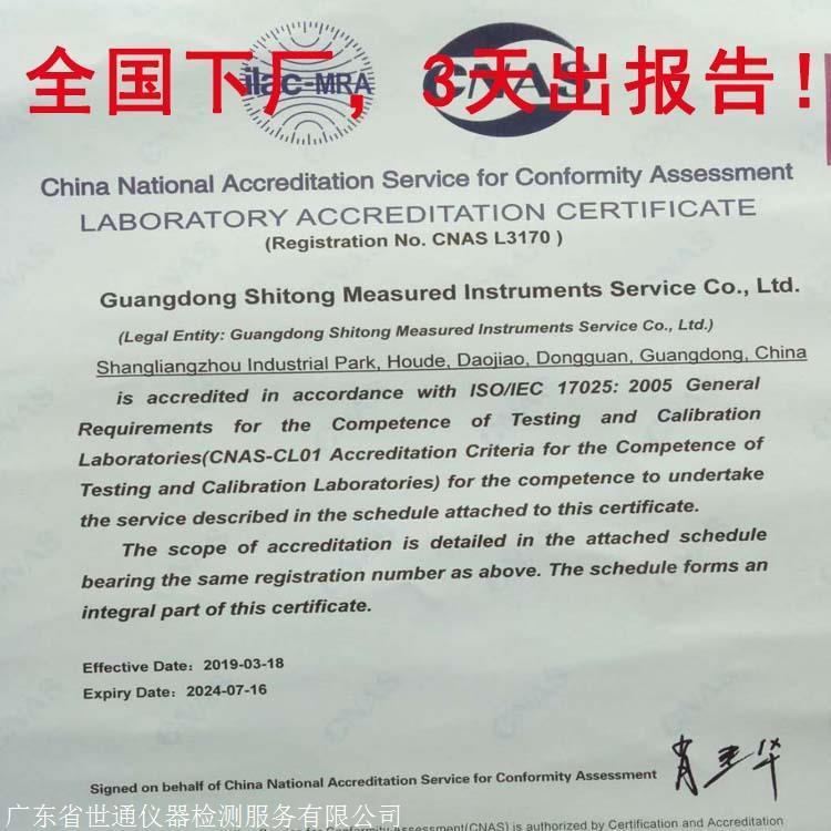 世通计量检测中心是经省质量技术监督局授权的国家法定计量校验机构和计量认证机构,是具有独立法人资格的第三方计量检测机构,世通计量检测中心是经CNAS认可第三方校准机构,可提供下厂服务并出具计量校准证书/数据报告。