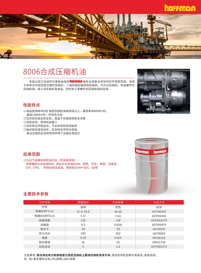 霍夫曼8006合成空压机油