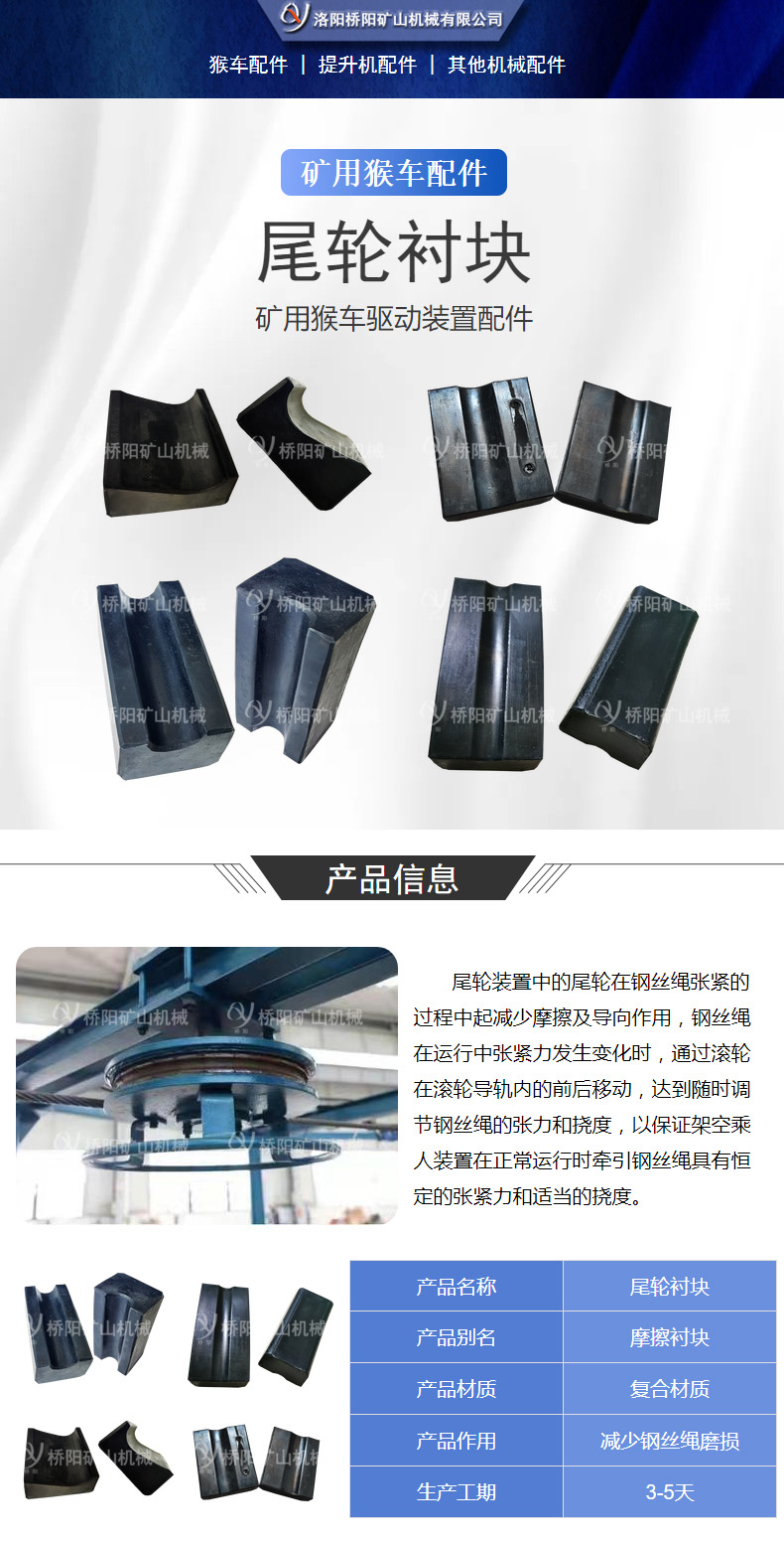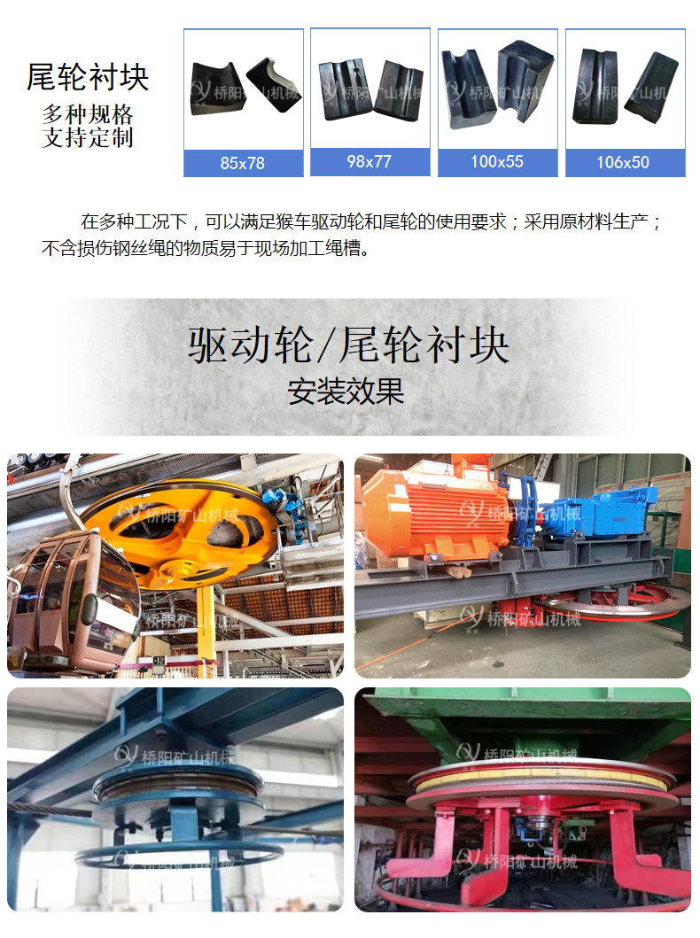 煤矿用钢丝绳衬垫 尾轮衬块106x50x45x27