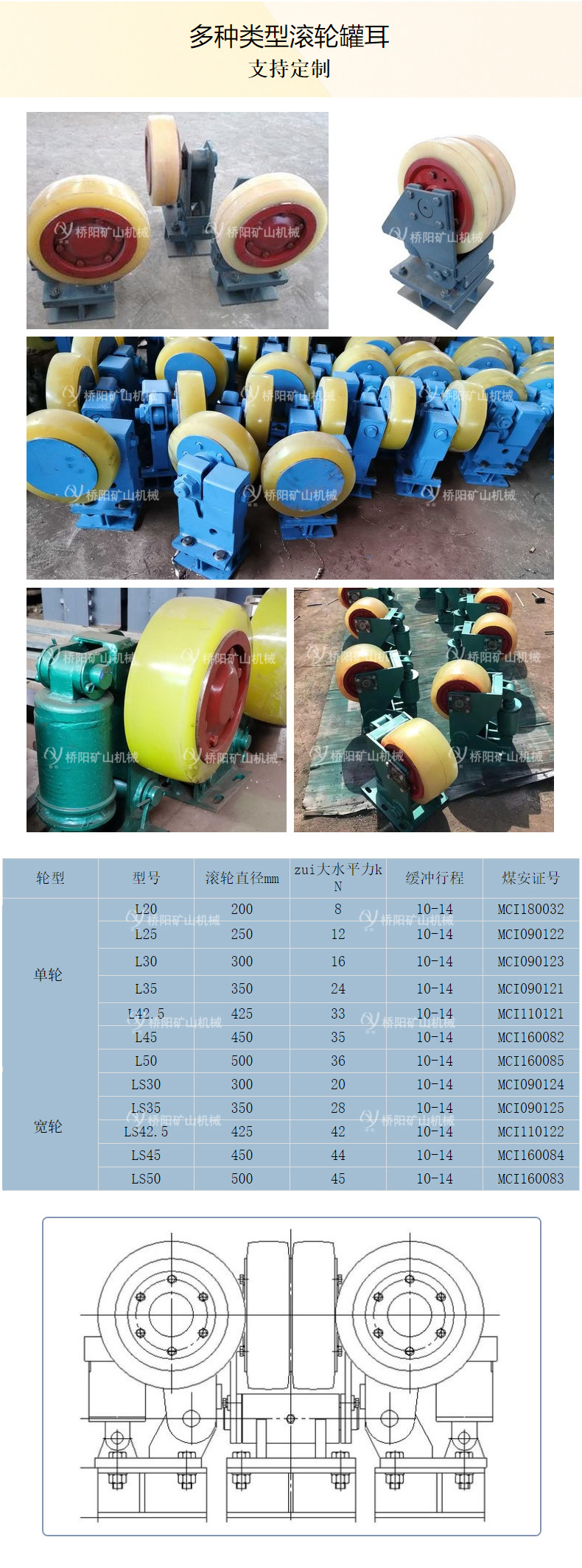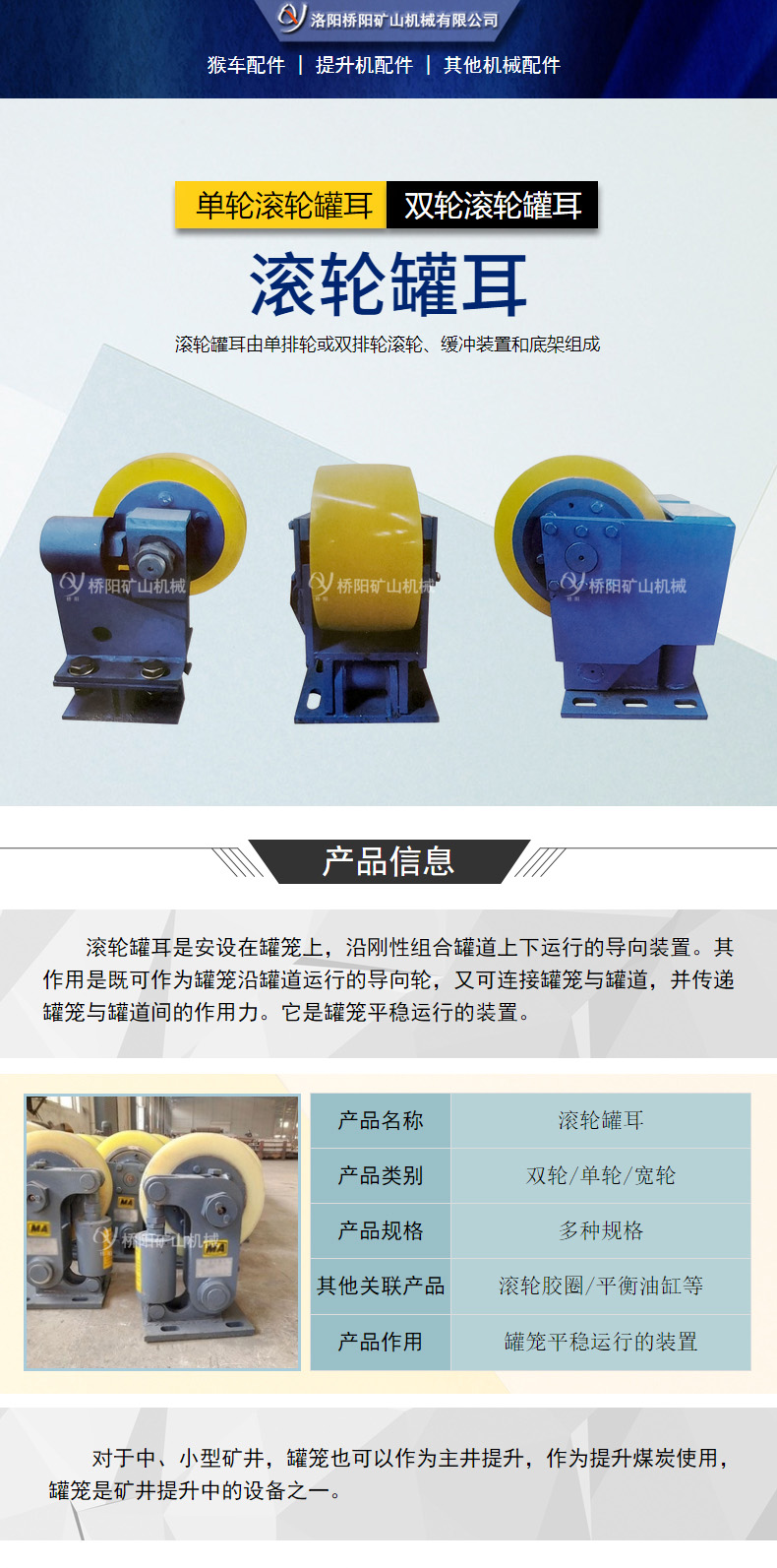滚轮罐耳结合我国矿山特点为目前运行中的提升容器更换滚轮导向装置提供了便利条件,广泛应用与矿山,煤炭等工业生产部门。