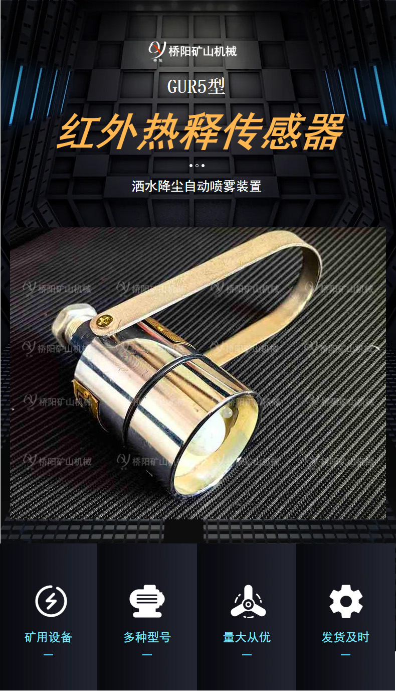 GUR5矿用热释红外传感器煤矿喷雾降尘设备探测行人或行车,采集移动信号控制喷雾装置,实现自动喷雾降尘功能。
