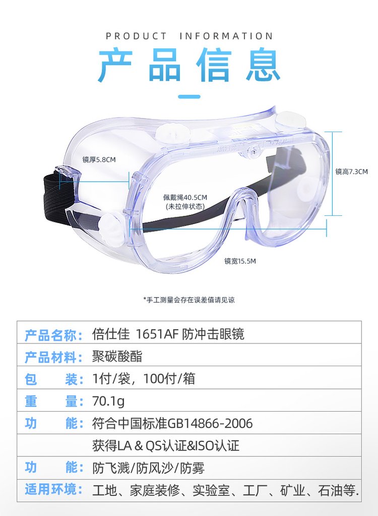 | 产品名称 | 倍仕佳1651AF防冲击眼镜 | ||