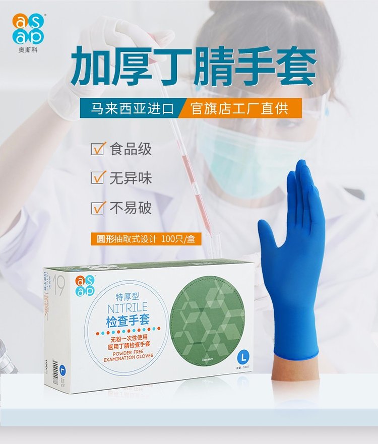 多给力一次性手套食品级餐饮厨房加厚耐用丁腈乳胶手套美容家务