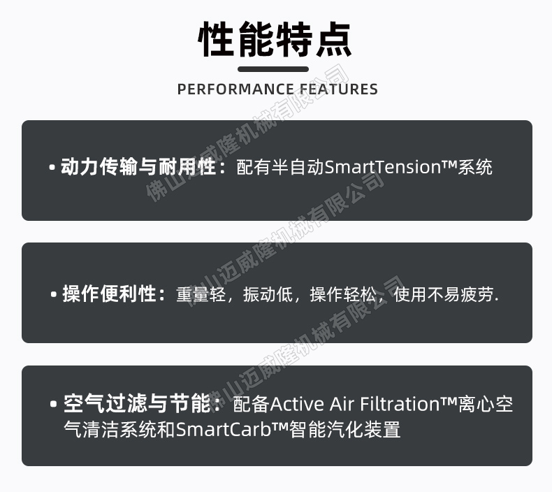 高效发动机:采用二冲程风冷发动机,具有高效能和可靠性,适合长时间使用。