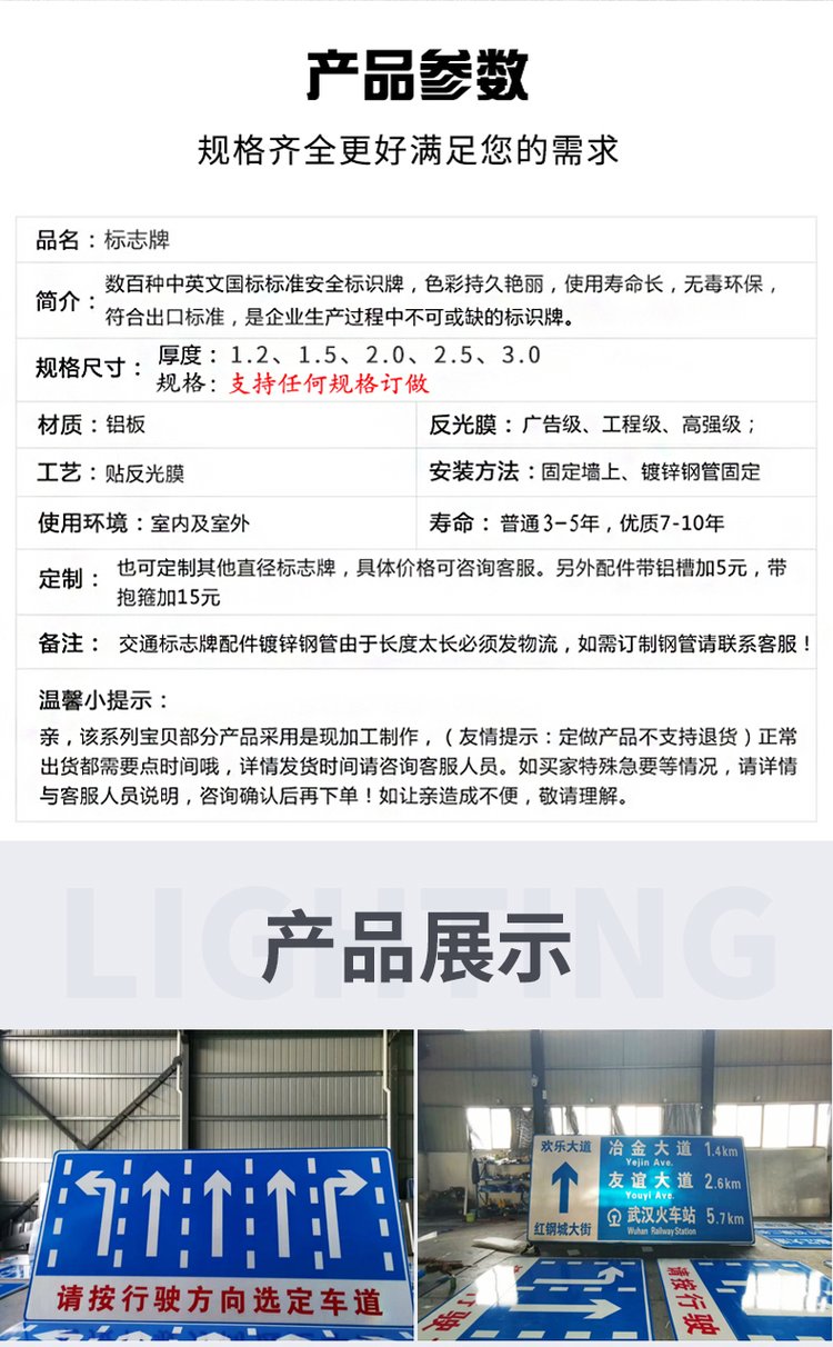定制交通标志牌路牌道路指示牌限速限高减速警示牌停车场反光标牌