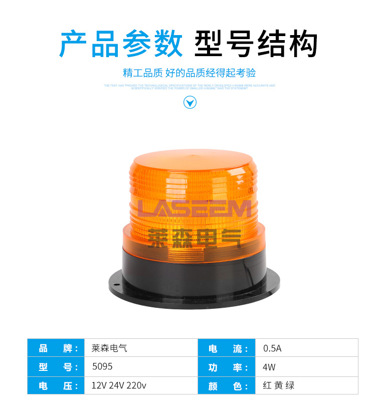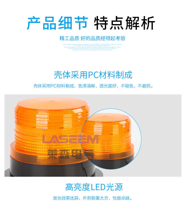 5、适于用恶劣环境下正常工作警示灯通常是用在机械设备等开发。一般情况下,用处可以提供多样的长度的产品的,有灯罩组合的构造,需要时一边方向的灯罩可以组合复合颜色。此外,还可以根据光源形式的不同,分为:1灯泡旋转灯;2LED闪光灯;3氙气灯管频闪灯,其中LED闪光形式的是灯泡旋转形式的升级版,使用寿命更长,更节能,更环保!