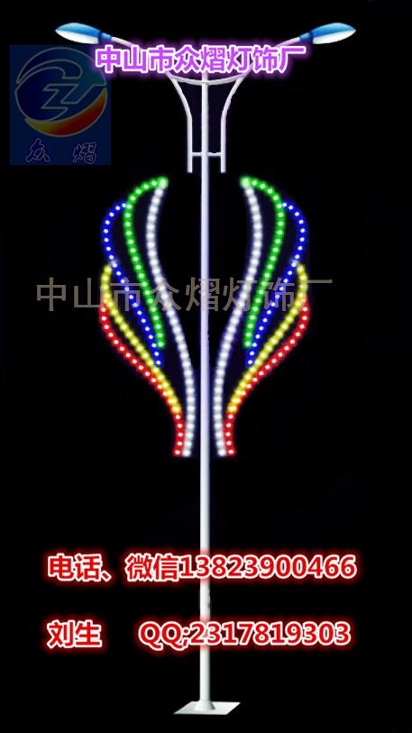 LED灯杆造型,是用LED产品为普通灯杆做造型,可挂装于灯杆上,夜间同路灯一起点亮,用于城市街道的LED夜景亮化产品,将LED双面串灯创造性的运用到灯杆艺术景观,巧妙的借助于灯杆载体,使照明与景观浑然一体、光色与文化和谐相融,让街道呈现出开阔而悠扬,美丽而豪装的现代城市氛围。