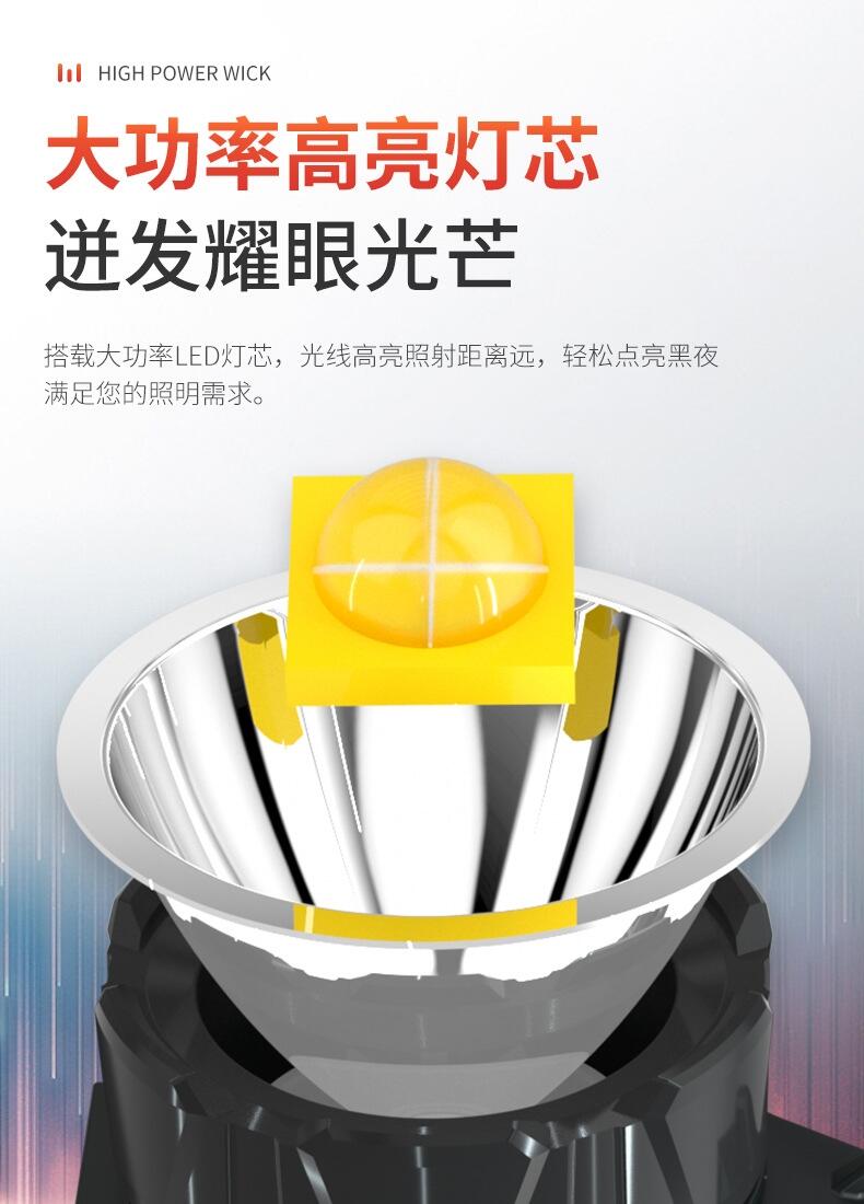 1.光源采用高亮P50灯珠 LED光源,发光效率,光色呈白色,聚光效果良好,照射距离远;