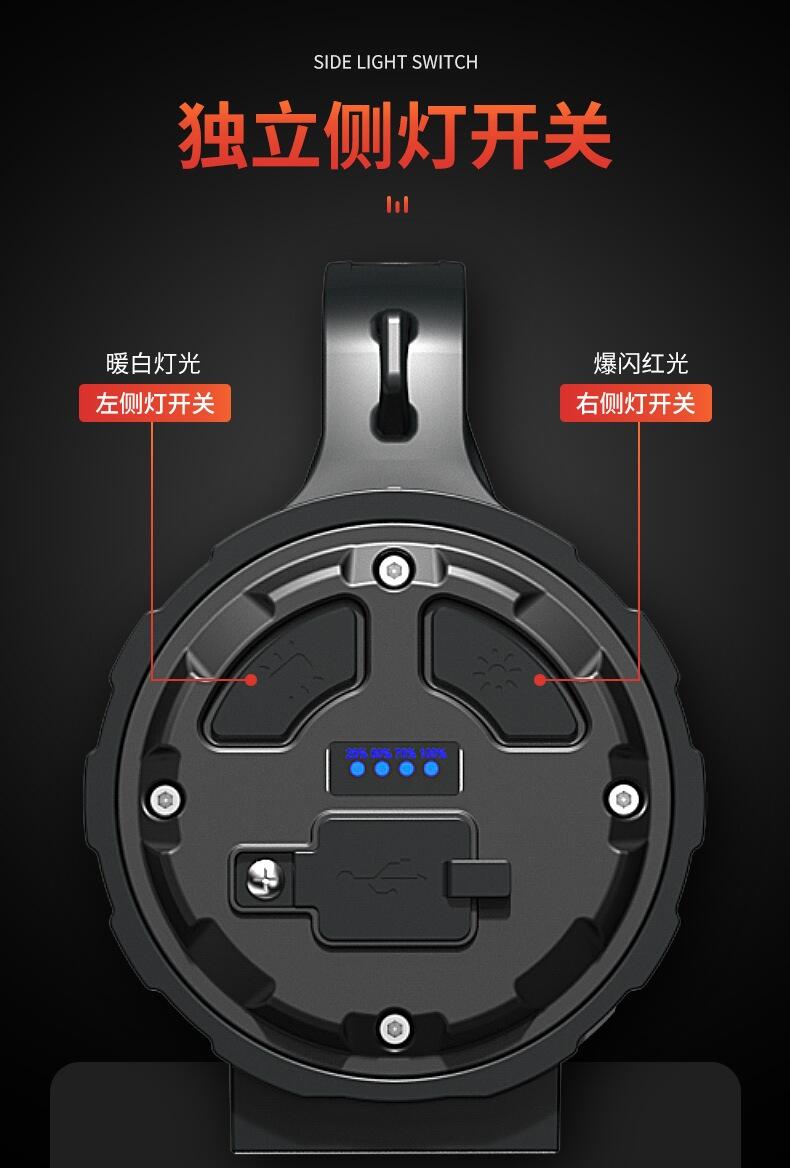 4.主灯强光、弱光、爆闪三档灯光亮度自由调节,适应各种不同环境。
