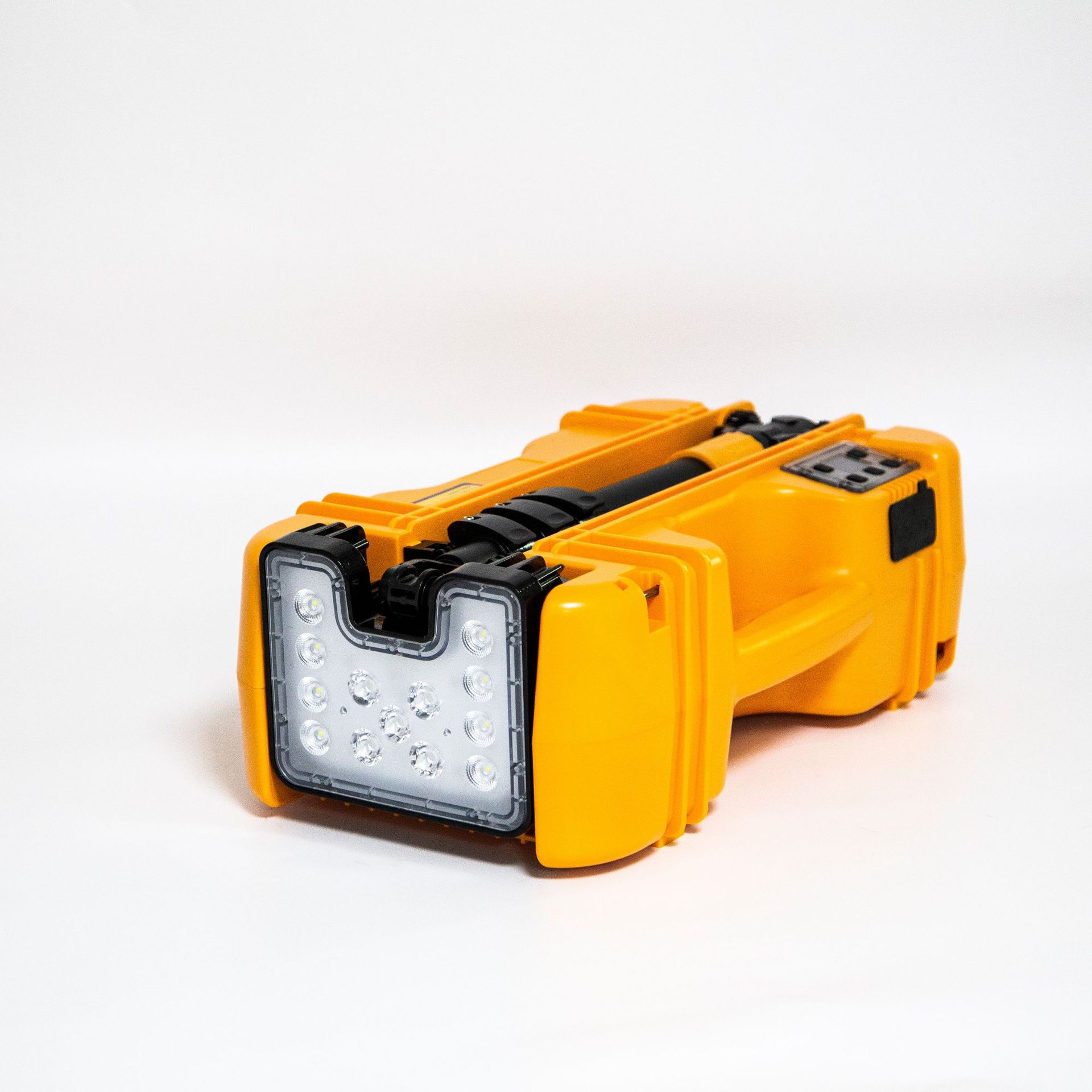 3.箱体配备LCD屏,采用图像的形式生动、直观地指示不同的照明模式,针对不同的照明模式,可手动进行10%-100%的无极调光,且LCD屏上课直观的显示电池剩余工作时间;