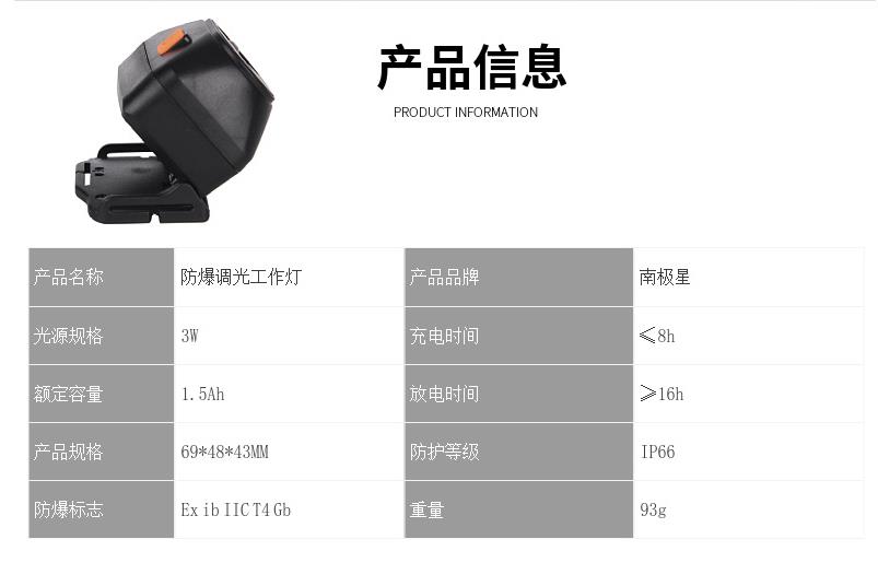 连续工作时间:强光≥8h;工作光≥16h