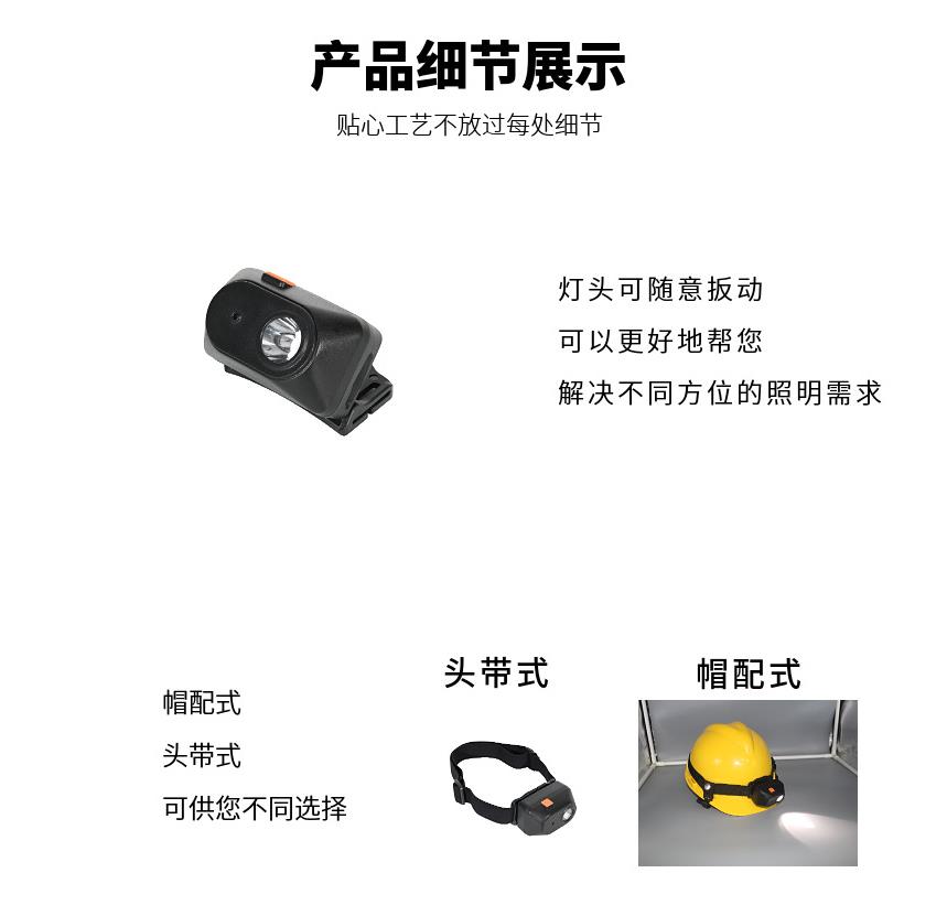 ● 使用方便:设计合理,灯具可直接头戴或安装在头盔上使用,照明角度可随意调节。