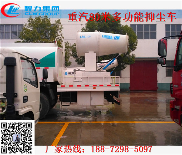 为了减少拆迁工地扬尘污染,各地政府大量购置多功能抑尘车,也称雾炮车,专门用于拆迁工地扬尘控制,湖北程力汽车公司多功能抑尘车喷雾距离为20到120余米,最大蓄水量近10吨,主要作用是喷雾抑尘,同时具备洒水和道路冲洗功能,可以有效抑制扬尘的产生。