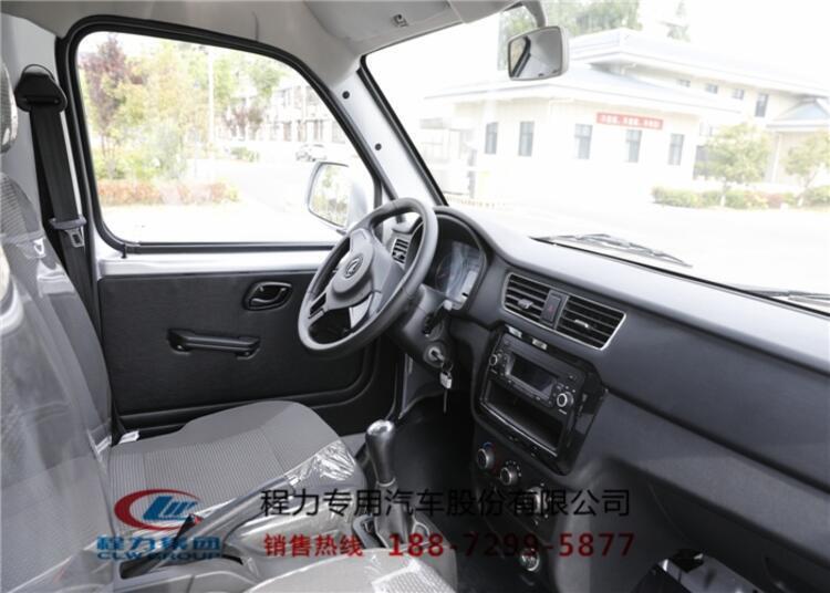 底盘配置:单排国六新款驾驶室,2850mm轴距,小康111马力国六汽油发动机,5挡变速箱,前盘后鼓,带ABS,185/70R14后双胎。