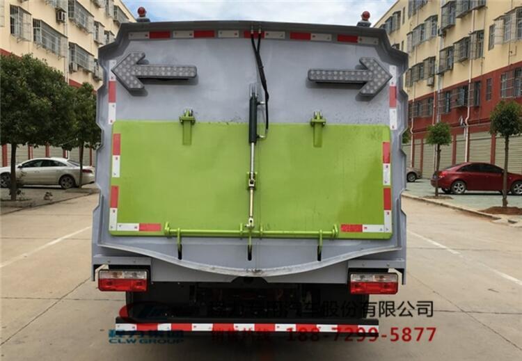 上装标配:带4个扫盘、江铃78马力副发动机、三洋马达、施耐德控制开关、海普瑞斯电磁阀组、无级变速自动离合器、免维护离心式自动风机、不锈钢垃圾箱、上海新西山电子水泵,尾部LED箭头指示灯、手动泵应急系统、垃圾举升自卸功能。