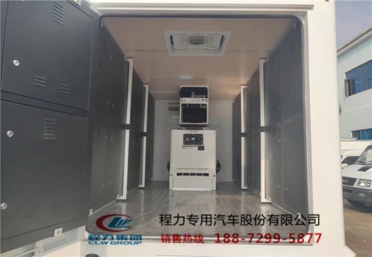 碳钢骨架,外蒙1.2冷轧钢板,基层防锈漆,挂腻子,外喷专用车漆。厢体内部木纹板内饰,厢内LED照明,