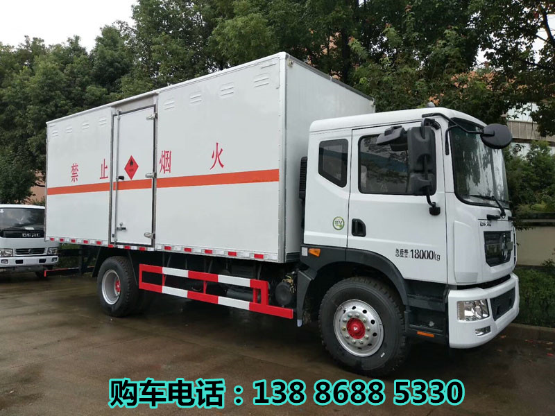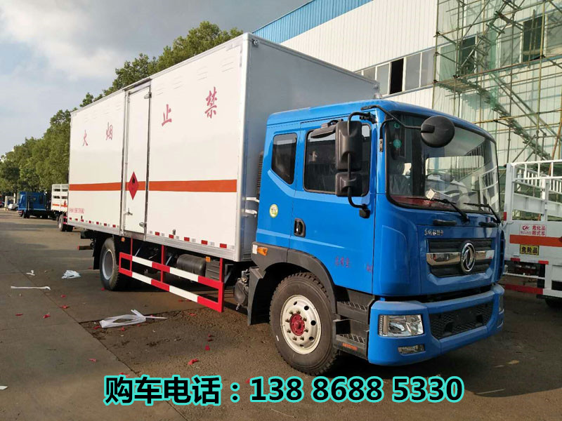 该车主要用于运输独立容器包装的易燃气体,非易燃无毒气体.类项号为2.1,2.2;运输易燃气体时挂2.1类标志牌,运输非易燃气体时挂2.2类标志牌;厢体顶部封闭,不可开启;外形尺寸长(mm)/轴距(mm)/后悬(mm)的对应关系:9995/5600/3135,9100/5300/2540,8600/4700/2640,8700/4700/2740,8995/5300/2435;侧、后防护材质均为Q235,侧防护连接方式为焊接加螺栓连接,后防护连接方式为焊接连接,断面尺寸为(mm):120×50,离地高度:500mm;选装不带尾板时,后防护连接方式为焊接连接,断面尺寸为(mm):120×60,离地高度:450mm、430mm、410mm;选装尾板样式1与样式2时,后下部防护装置断面尺寸(mm):φ120,连接方式:螺栓连接,离地高度:500mm,液压尾板收起状态的水平长度为260mm,尾板质量450kg;选装尾板样式3时,后下部防护装置断面尺寸为(mm):120×60,连接方式:焊接,离地高度:500mm,液压尾板收起状态的水平长度为300mm,尾板质量450kg;随底盘选装驾驶室;EBS型号/厂家:EBS/ESC-d/襄阳东风隆诚机械有限责任公司;仅采用子午线轮胎,排气管前置,安装限速装置(限速80km/h).安装具有卫星定位的行驶记录仪,转向轮装备轮胎爆胎应急防护装置,后轴安装空气悬架,选装采用直接供电方式的ETC车载装置;发动机型号/油耗值(L/100km)分别为:B6.2NS6B230/26.10,D4.5NS6B220/26.60,YCS04200-68/26.40,CY4SK761/26.80,D4.5NS6B240/25.60,B6.2NS6B260/25.13;选装侧门后门样式及瓦楞工艺厢体,选装百叶窗式通风口样式;选装不带液压尾板样式,选装带尾板不同后部外观;随底盘选装驾驶室、电瓶、尿素罐、储气筒、油箱、后处理、排气管、后组合灯不同样式外观.