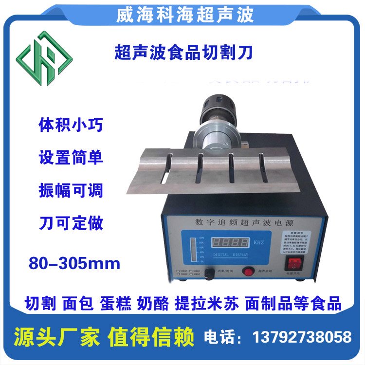 另外可以选购250mm 200mm 120mm 60mm的切割刀。主机和换能器一样,就是到可以选择60-305mm的刀,也可定制400mm的刀。材质钛合金材质 ,切割食品专用。