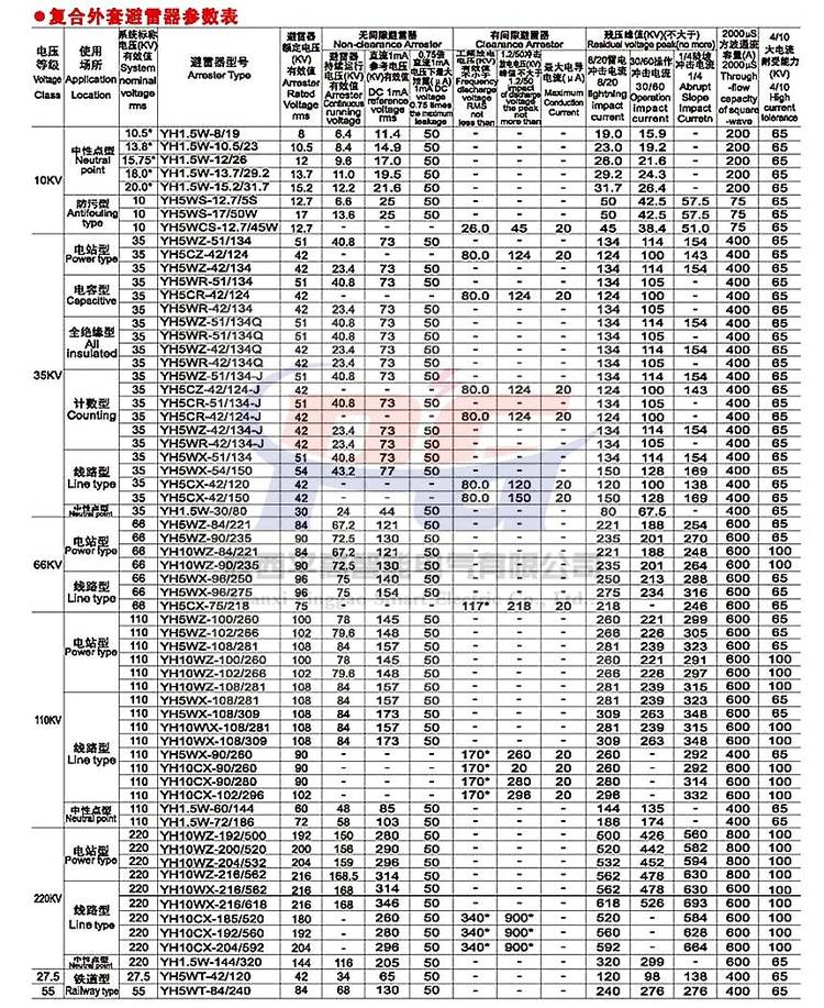 | 额定绝缘电压 | YH5WZ-51/134V | ||