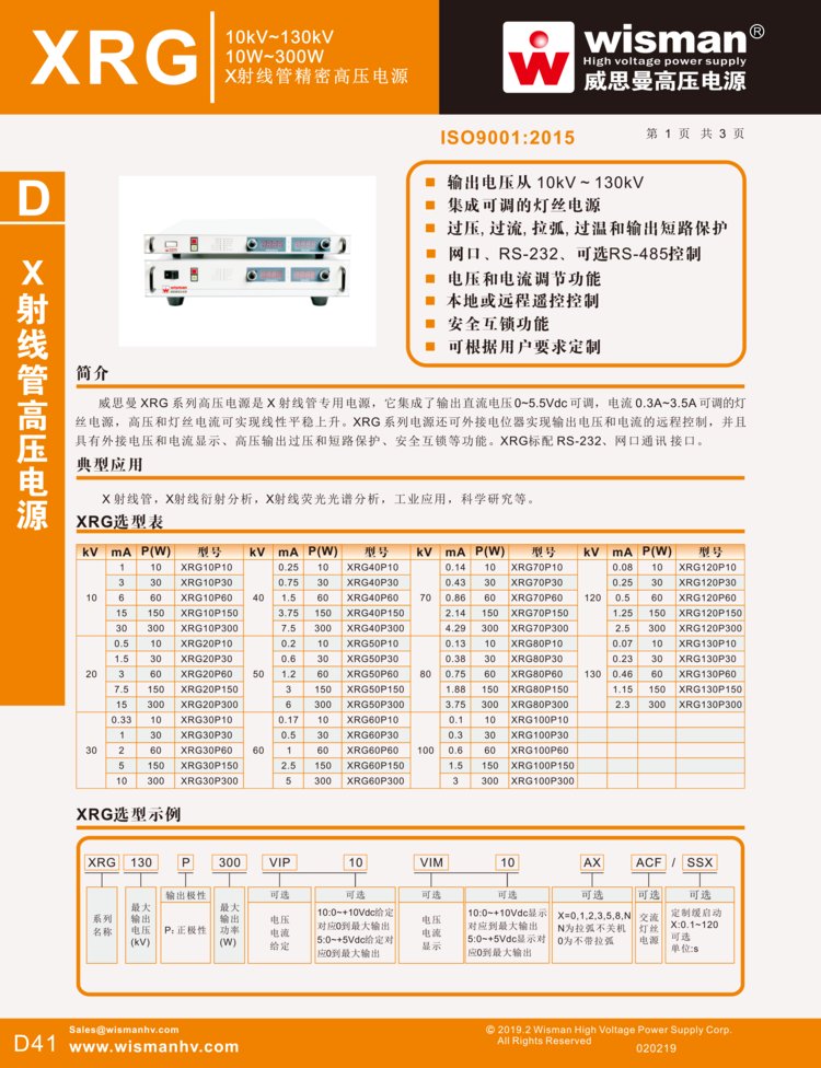 ???威思曼高压电源有限公司是微型高压电源模块、高压电源模块、X光射线管高压电源、机箱高压电源、特殊定制高压电源、高压附件等高压电源产品的制造商,公司设计并制造定制和标准高压电源产品,功率范围从100mW到200kW,电压范围从60V到500kV。威思曼产品应用领域覆盖医疗、工业以及科研等领域。高压电源您可以在威思曼一站式采购多个品种规格。