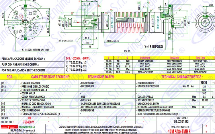 SPI Engineering Srl MOD:UB0052-2015 C=8 工件夹紧单元DRAW.N.110.05 MIN:50BAR MAX:70BAR 数控磨床的夹紧装置,用于数控磨床工件定位,安装在数控机床的工作台上,对油缸和刀具位置进行夹紧,属于工具磨床专用工件夹具,以使工件相对于CNC磨床和刀具获得正确的位置,并将工件夹紧在CNC机床工作台上。