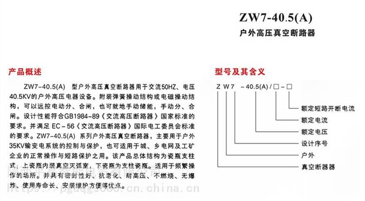 ZW7系列40.5KV型户外真空断路器用于交流50HZ的三相电力系统,作为分、合负荷电流,过载电流及短路电流之用。