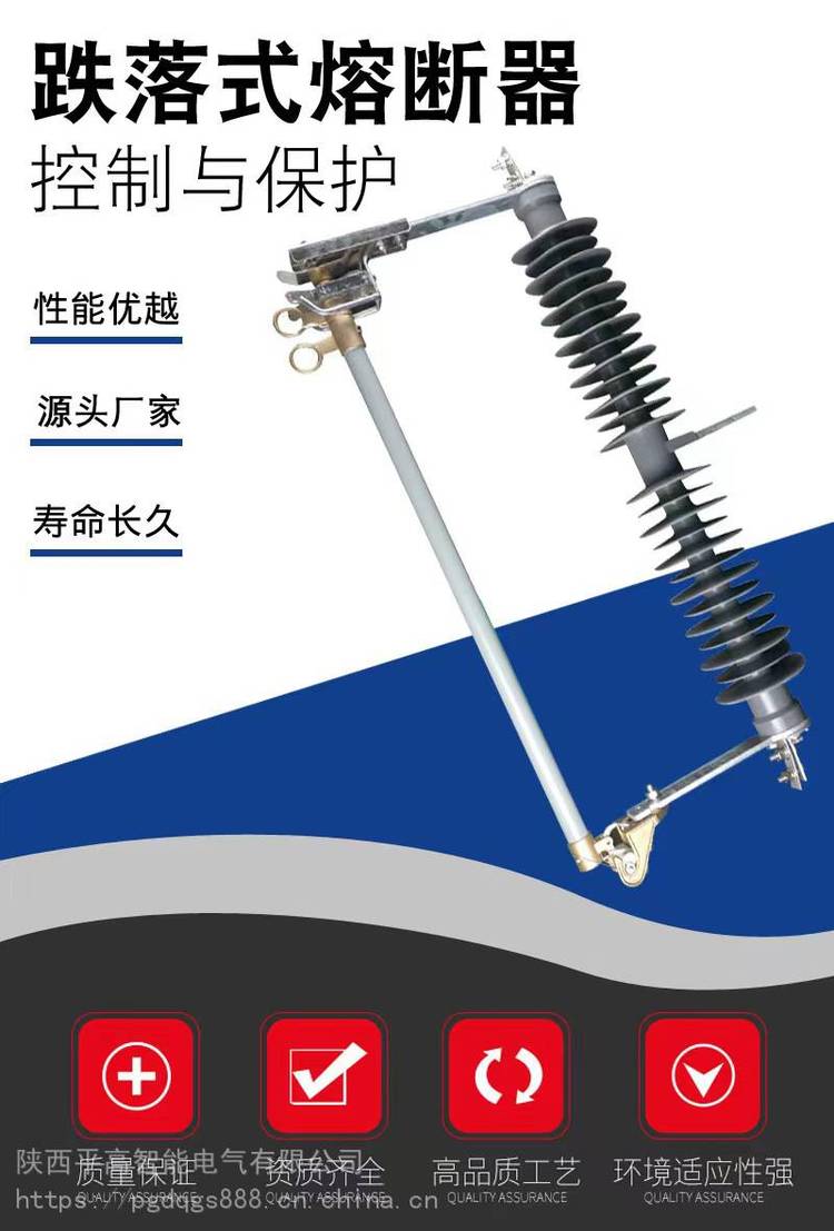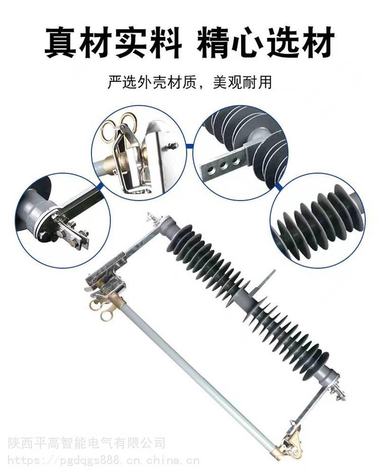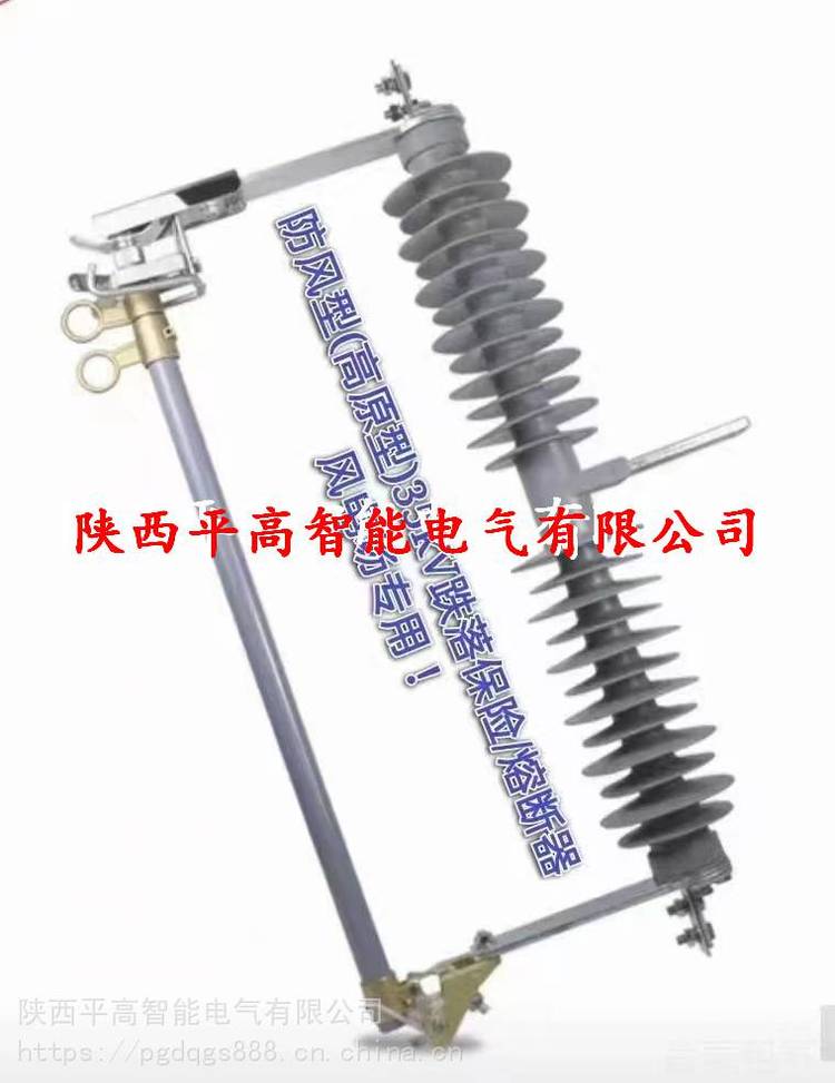 陕西平高智能电气有限公司新疆乌鲁木齐、克拉玛依、哈密、阿克苏、喀什市风电场35千伏防风型熔断器HGRW1-35/200A户外35KV跌落式熔断器。防风型,风电场型, /小型化35KV跌落式熔断器作为35kV配电线路和配电变压器一次侧作为保护和进行设备投、切操作之用。它安装在35kV配电线路分支线上,可缩小停电范围,因其有一个明显的断开点,具备了隔离开关的功能,给检修段线路和设备创造了一个安全作业环境,增加了检修人员的安全感。安装在配电变压器上,可以作为配电变压器的主保护,所以,在35kV配电线路和配电变压器中得到了普及。