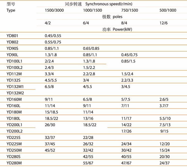 | 型号 | 西门子贝得YD系列变极多速三相异步电动机 | ||