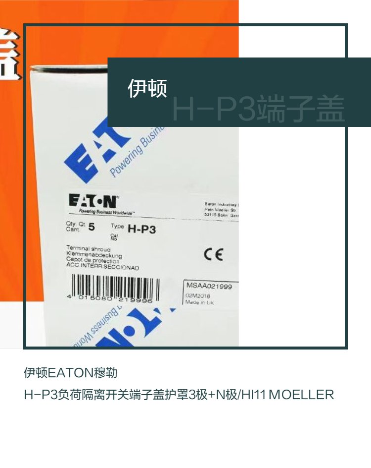 | 伊顿EATON穆勒 H-P3负荷隔离开关端子盖护罩3极 N极/HI11 MOELLER 品牌 | 伊顿 | ||