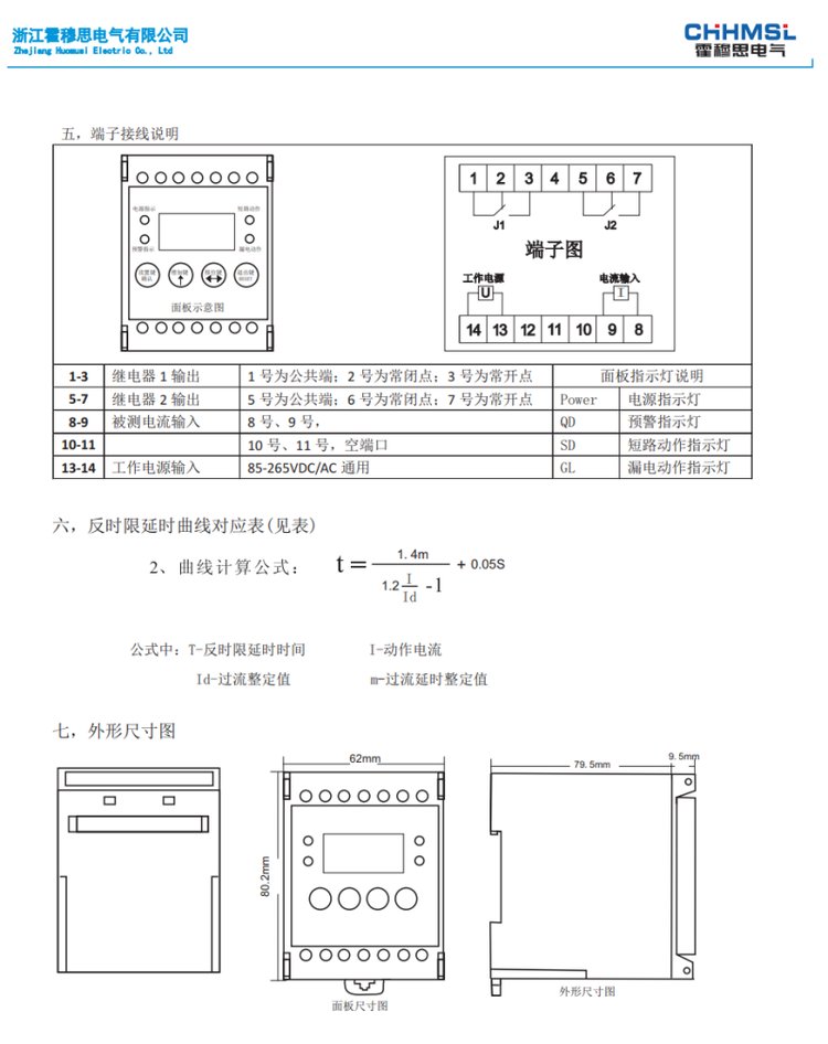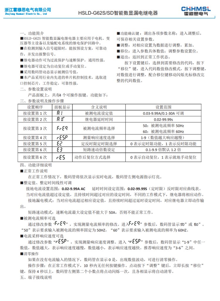 | HSLD-G62S/SD智能数显漏电继电器用于发电机 变压器输配电系统 品牌 | 霍穆思 | ||