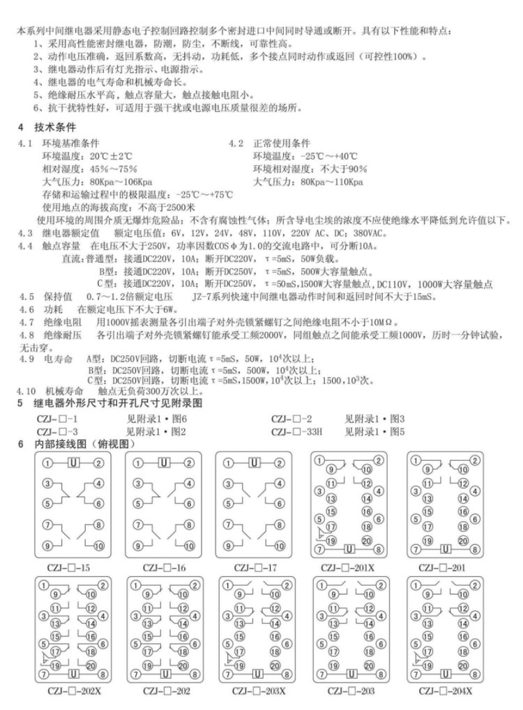 | 触点方式及数量 | 4常开2转换 | ||
