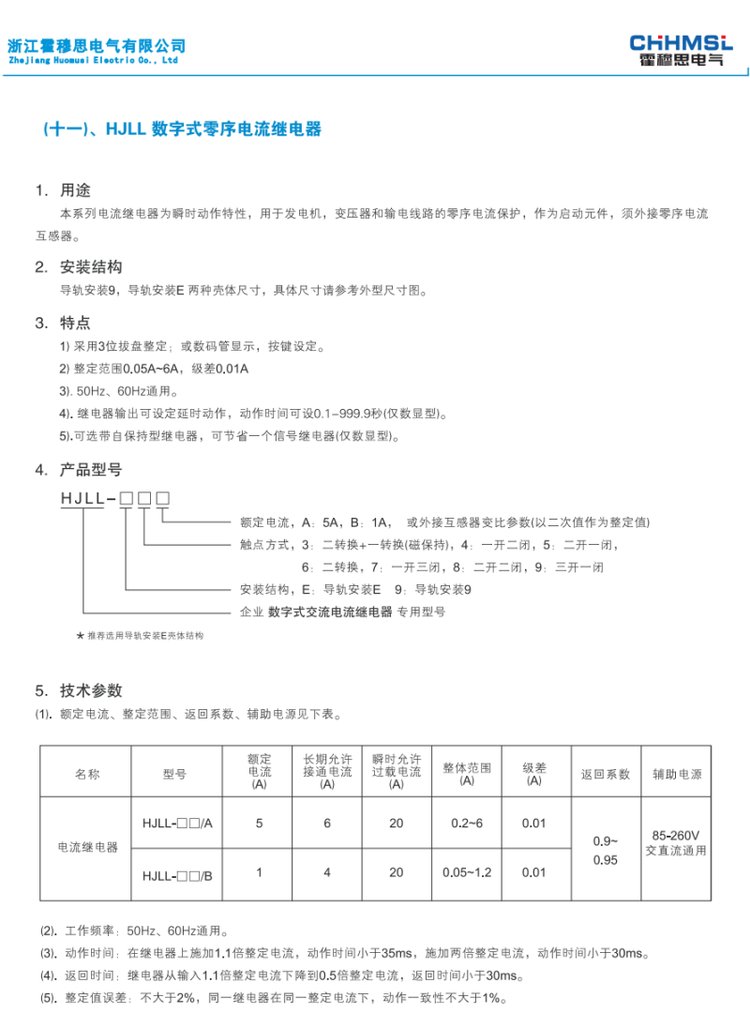 | HJLL-95/B霍穆思零序电流继电器设定技巧 内部接线 实物图 品牌 | 霍穆思 | ||