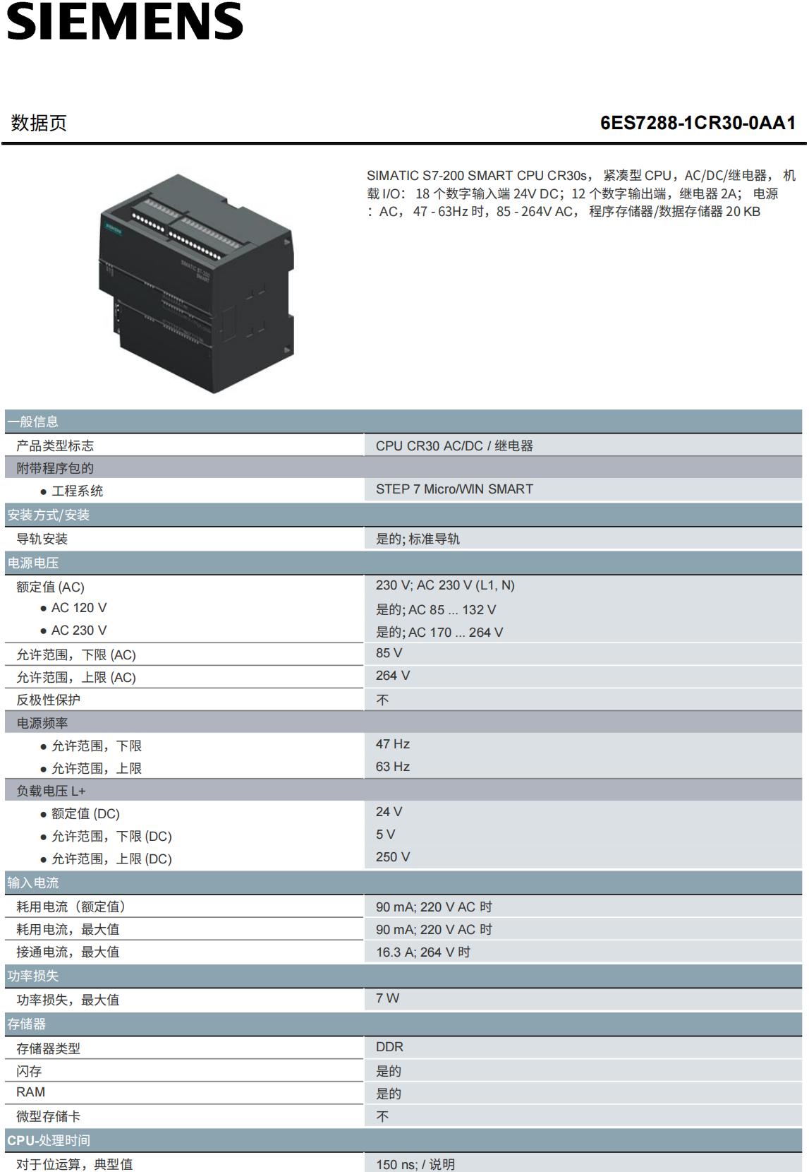 | 型号 | 6ES7288-1CR30-0AA1 | ||