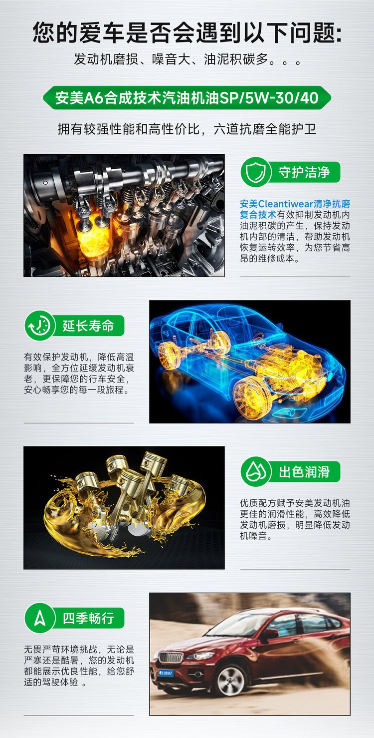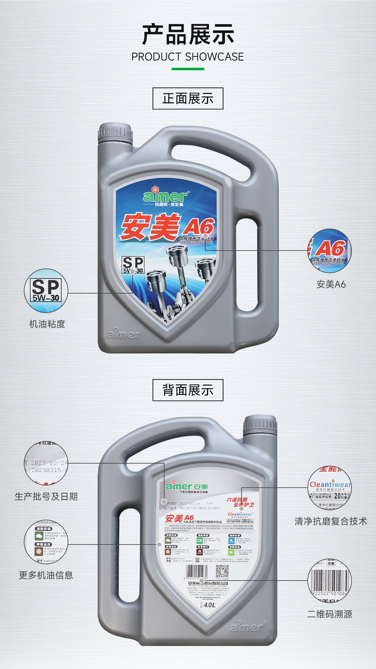 | 产品名称 | A6合成技术汽油机油 | ||