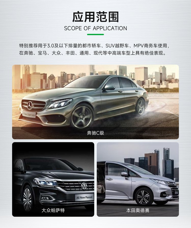 | 用途范围 | 各类经济型中小型轿车适用 | ||