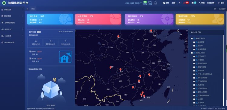 显示接入的企业数,监测点位数。