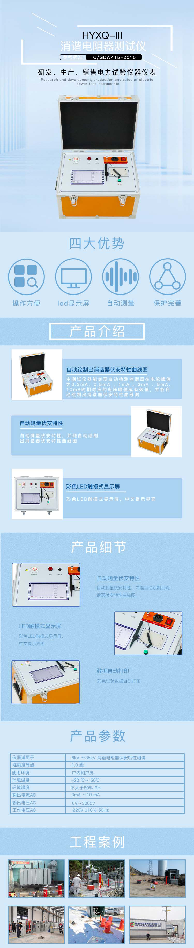 | 仪器适用于 | 6kV ~35kV 消谐电阻器伏安特性测试 | ||