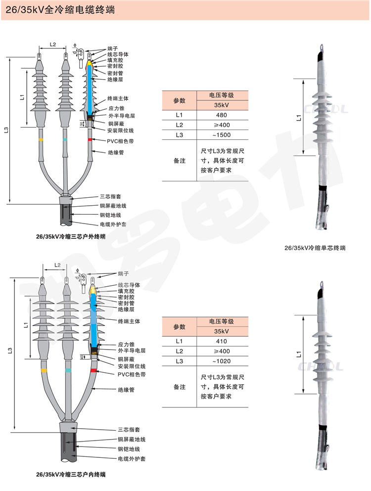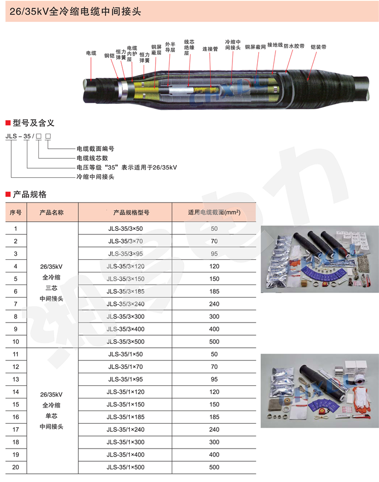 全冷缩电缆附件采用进口液态硅橡胶制造而成,其憎水性好,具有优异的抗污秽、耐老化、耐寒耐热性能,特别适合用于高海拔地区、寒冷地区、潮湿地区、盐雾地区及重污染地区。且安装不用明火方便使用,特别适用于石油、化工、矿山等易燃易爆场所。