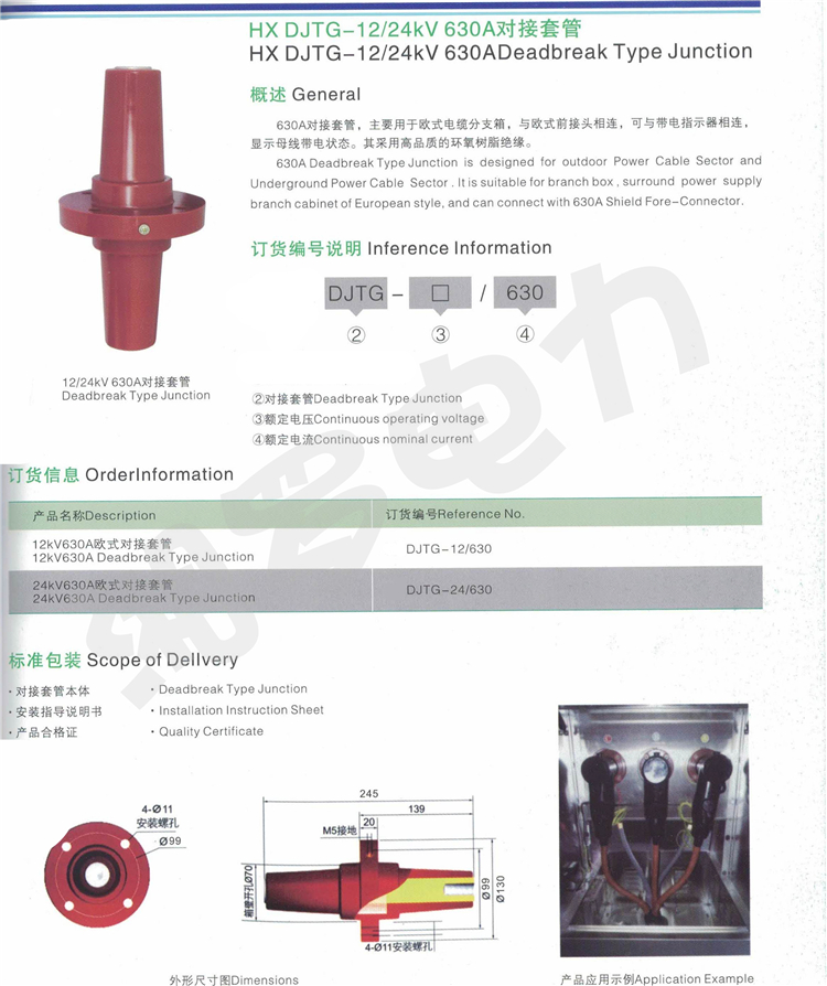 本产品采用优质的进口环氧树脂,APG注射工艺成型,具有优异的绝缘性能和机械性能,可满足在六氟化硫充气柜和油浸压器等设备的技术要求。出厂前均经过氦气检漏仪进行检测,确保不漏气(油)。