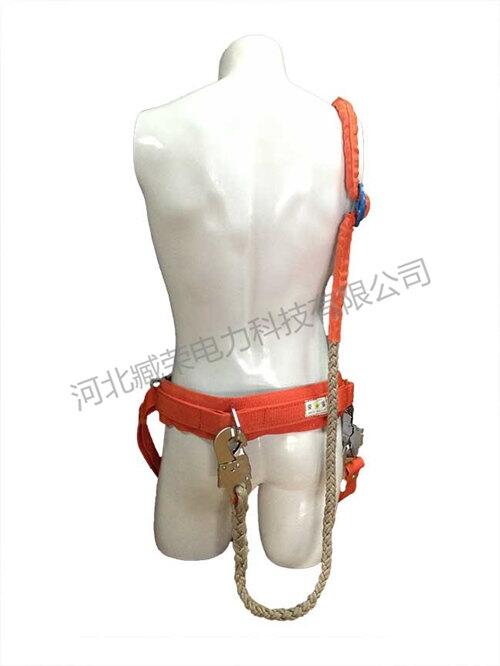 腰带采用了高质量的涤纶材料,宽度≥40mm,护腰带宽度≥80mm,安全绳直径16mm,锦伦材质,连接钩为双控钩,由钢板冲压而成,并镀铬处理。三角环、圆环等均采用优质中碳钢钢板冲压而成,表面镀镍铬处理。本产品严格按照GB6095-2009标准中的强度要求制作,整体拉力>15KN,适用于体重及负重之和不大于100kg的使用者。