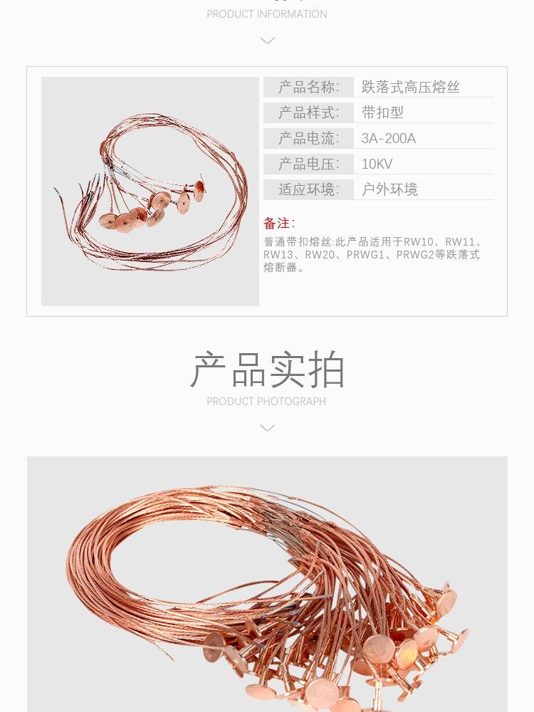 普通带扣熔丝:此产品使用于RW10、RW11、RW13、RW20、PRWG1、PRWG2等跌落式熔断器。
