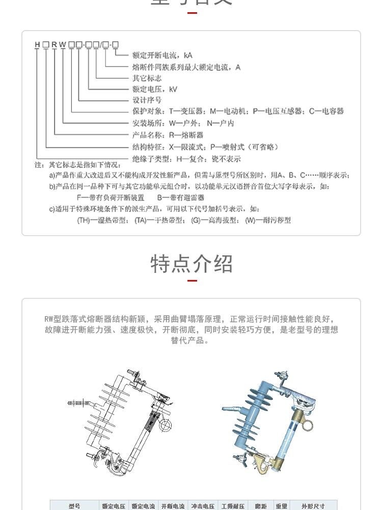RW型跌落式熔断器结构新颖,采用曲臂塌落原理,正常运行时间接触性能良好,故障进开断能力强、速度极快,开断彻底,同时安装轻巧方便,是老型号的理想替代产品。