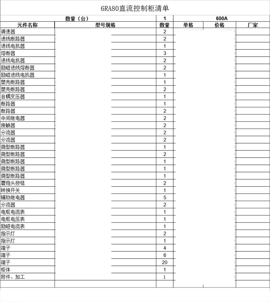 公司承接西门子6ra80、abbdcs800、欧陆590、安萨尔多等品牌直流调速器传动柜设计与安装,下边为传动柜所需清单